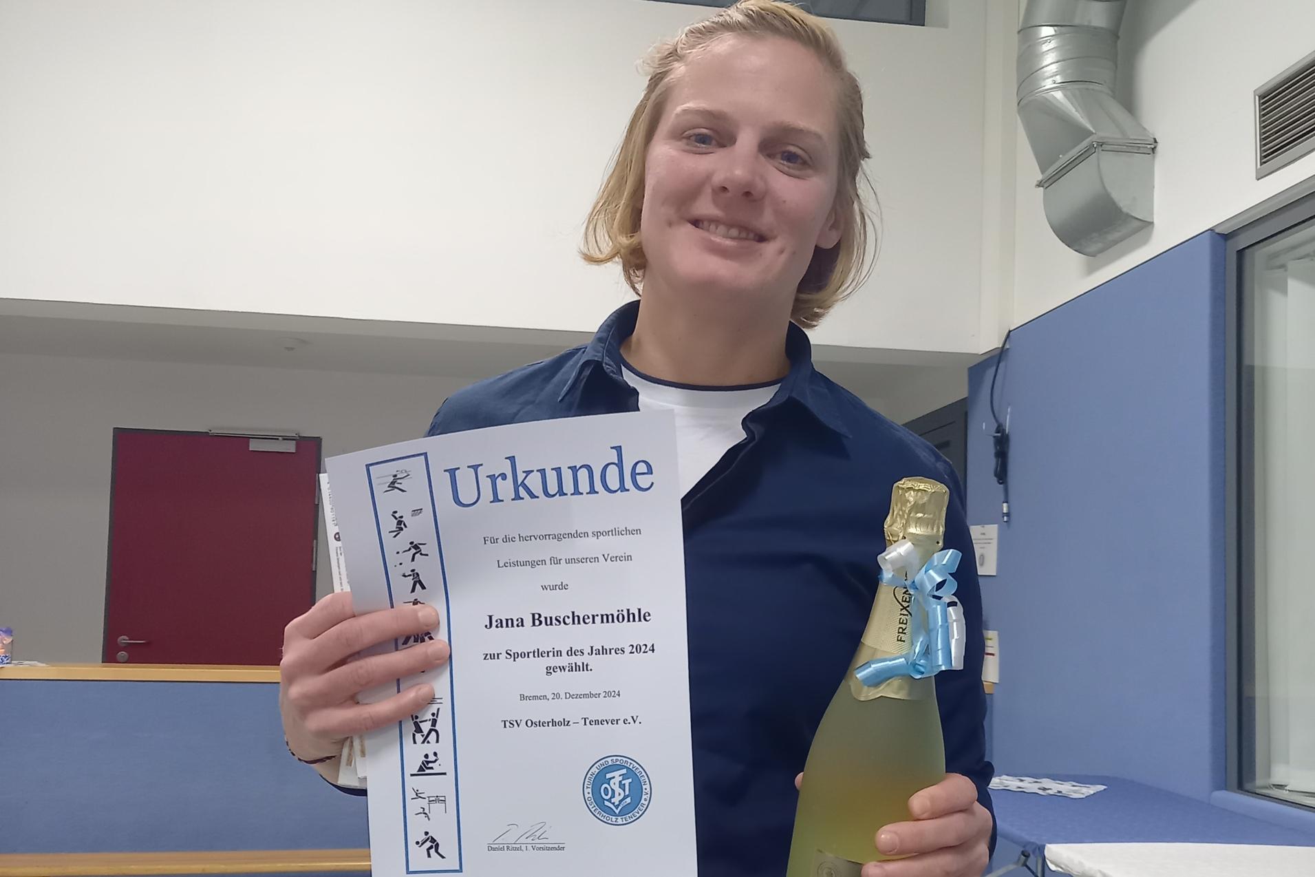 Jana Buschermöhle, die in 2024 auf internationaler und nationaler Judobühne viel Edelmetall gewann, wurde zur Sportlerin des Jahres gewählt/geehrt, nachdem sie bereits im September 2024 vom Bremer Judoverband mit der Verleihung des 2. Dan (2. Schwarzer Gürtel) geehrt worden ist.